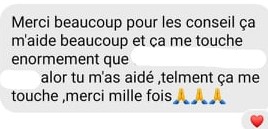 Si j'approuve ton inscription à l'accompagnement privé, nous pourrons discuter de tous les sujets qui te concernent (par exemple : relations, travail, problèmes divers, etc).