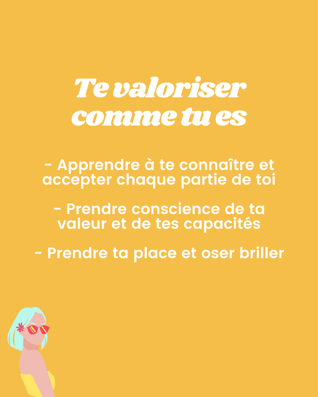 Pourtant aujourd'hui, je suis confiante, forte et très heureuse dans ma vie. J'aime ce que je fais et je fais ce que j'aime. Mes amitiés et mon couple se portent à merveille. Je suis bien dans ma peau et bien dans mes baskets. J'ai trouvé ma place et je sais m'affirmer. Et tout cela est possible pour toi aussi !